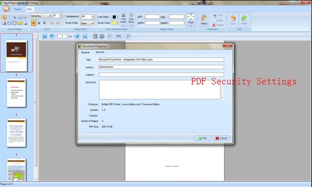 - Modify PDF properties: edit PDF title, author, subject, keyword and document security(password to open document, permissions of PDF file)